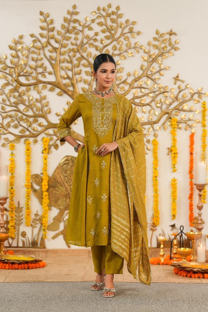 SKU: Festive Flared Kurta with Metallic Stripe Dupatta